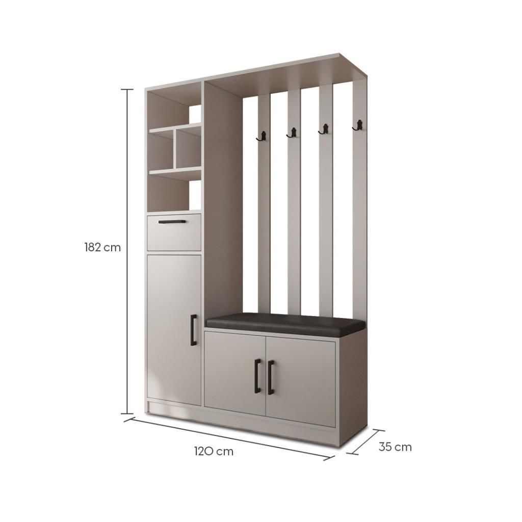 - Amasra mdf lam vestiyer : Genişlik: 120 cm yükseklik: 182 cm derinlik: 35 cm