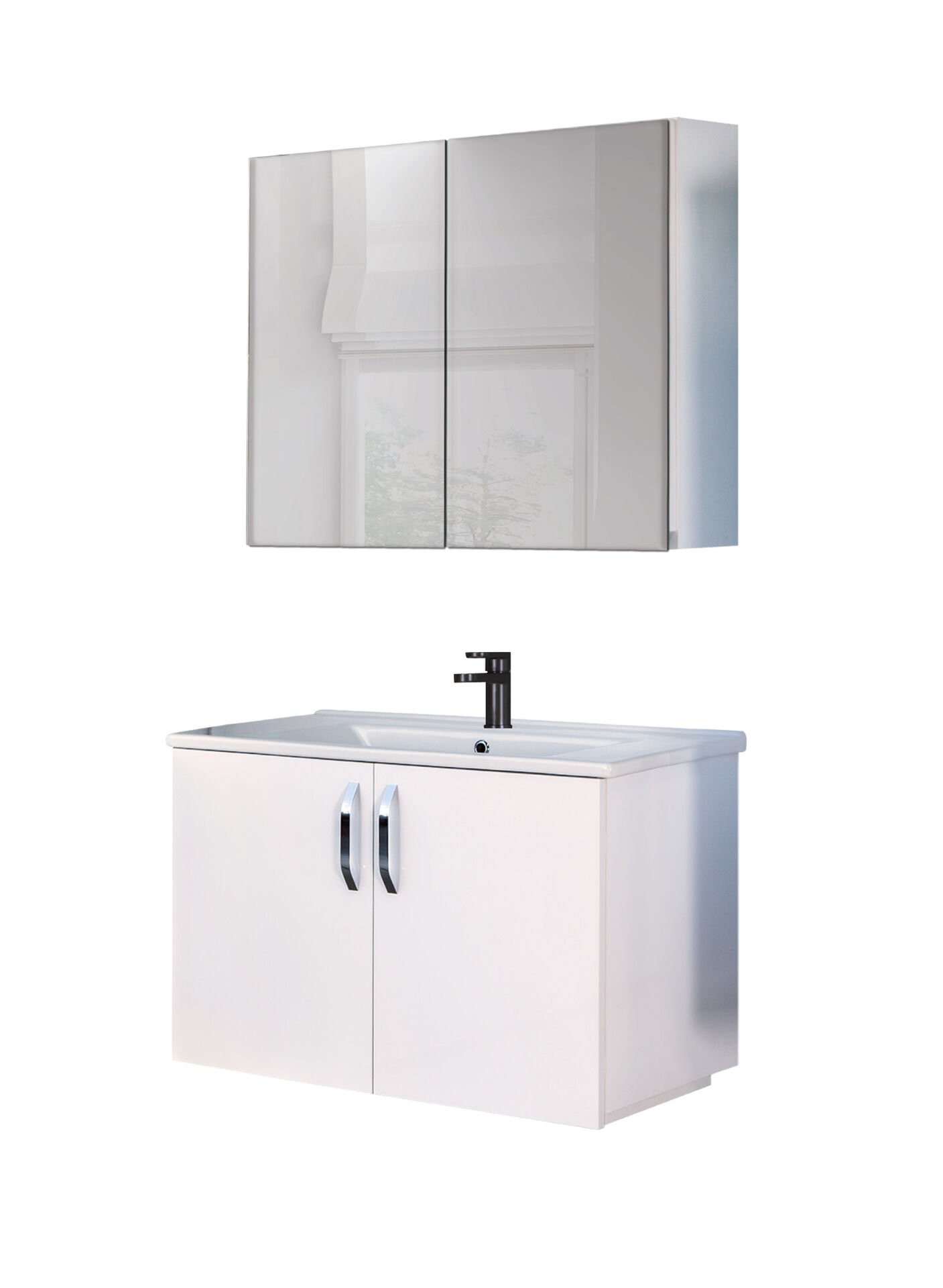 Trio Pazaryeri Asmira Banyo Dolabı - 82 cm - 2'li Set - Beyaz