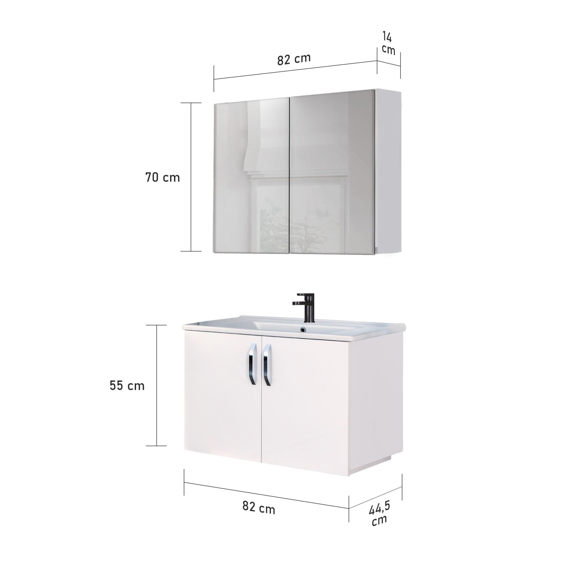 Lavabolu Alt Dolap Ölçüleri; Genişlik: 82 cm, Yükseklik: 55 cm, Derinlik: 44,5 cm