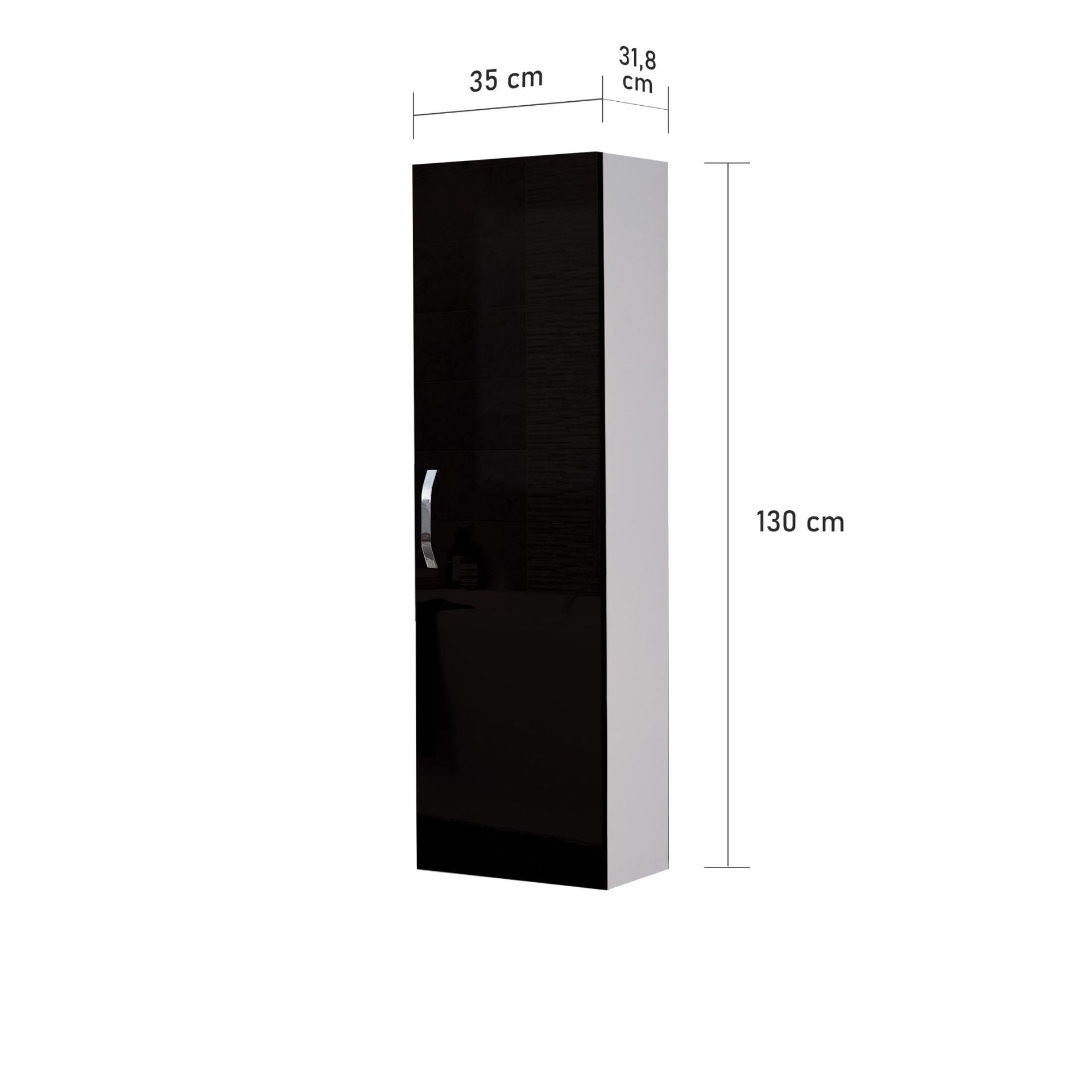 Boy Dolap Ölçüleri; Genişlik: 35 cm, Yükseklik: 130 cm, Derinlik: 31,8 cm