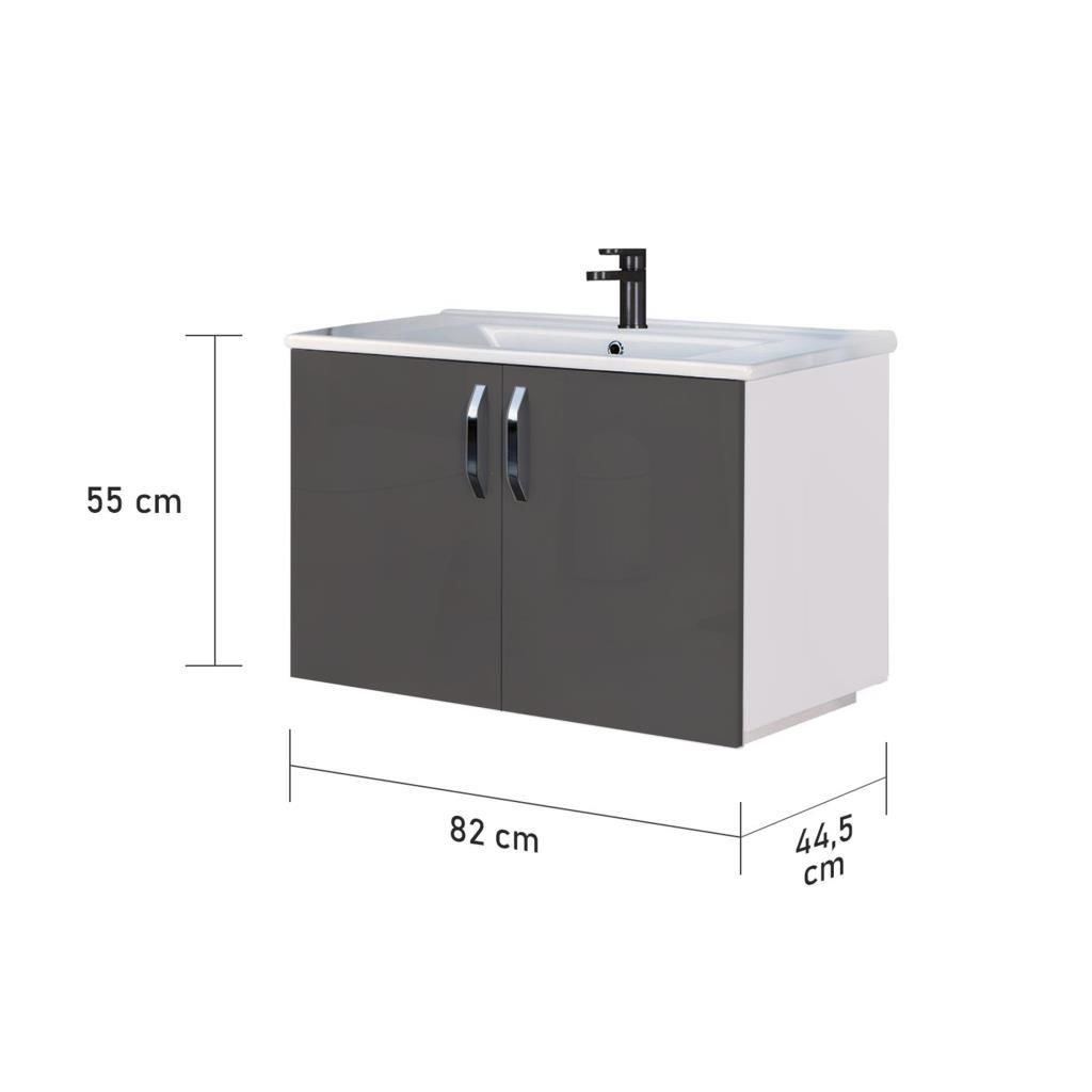 Trio Pazaryeri Asmira Lavabolu Alt Dolap - 82 cm - Antrasit Gri