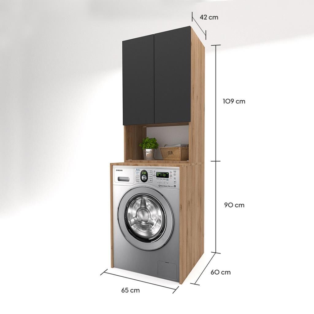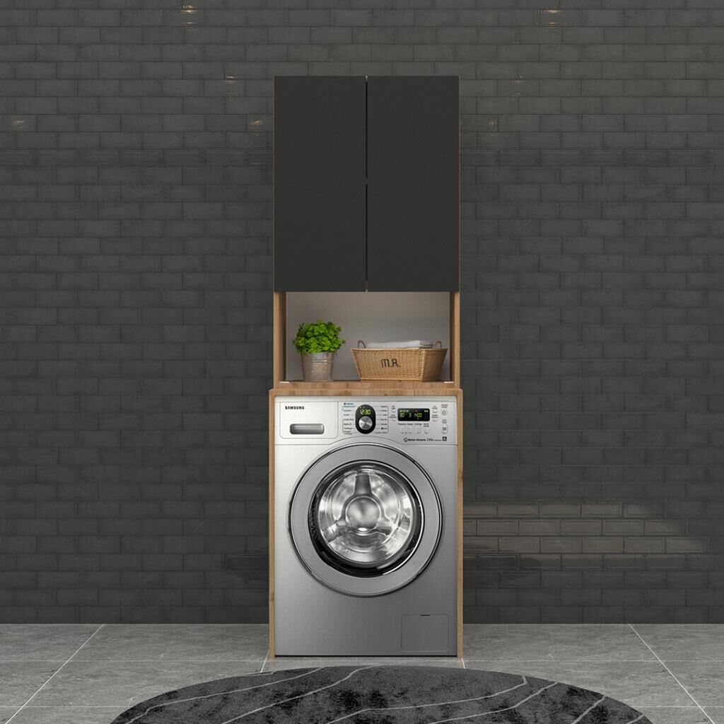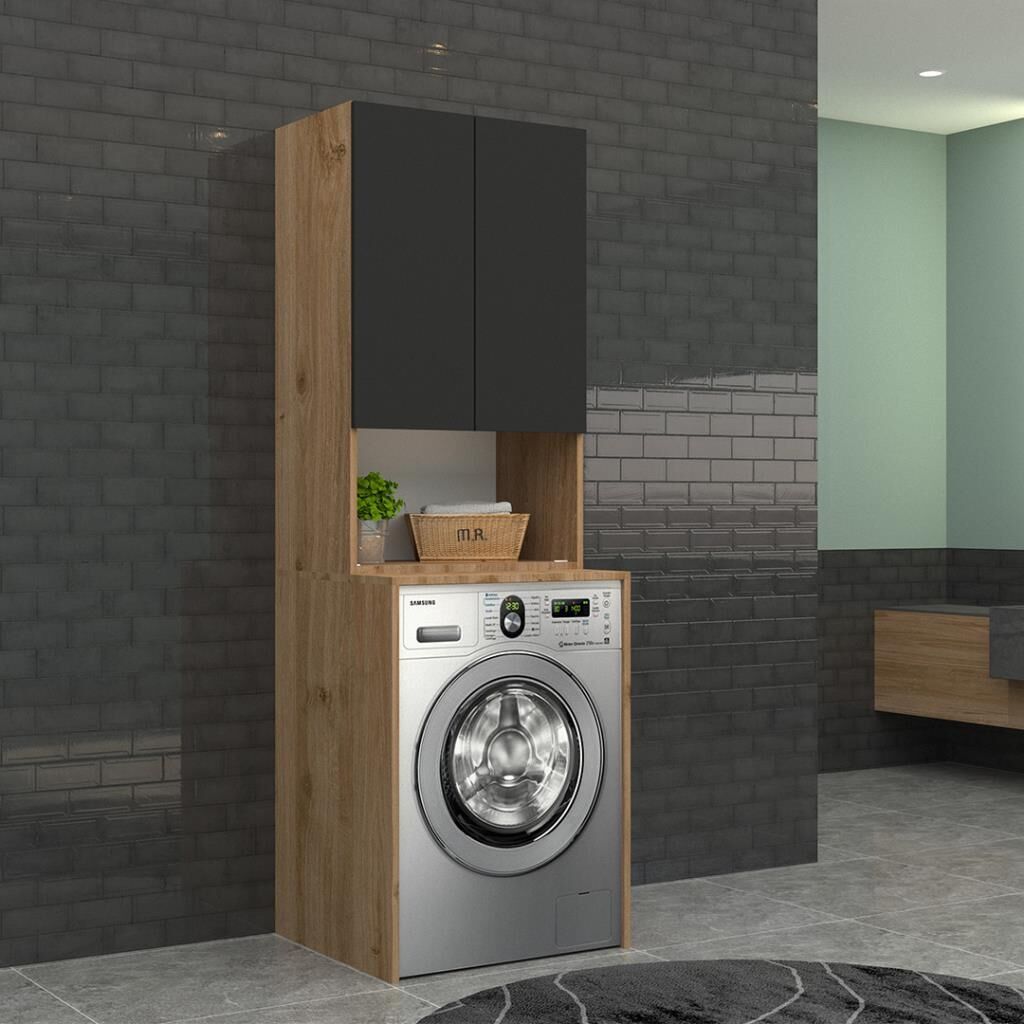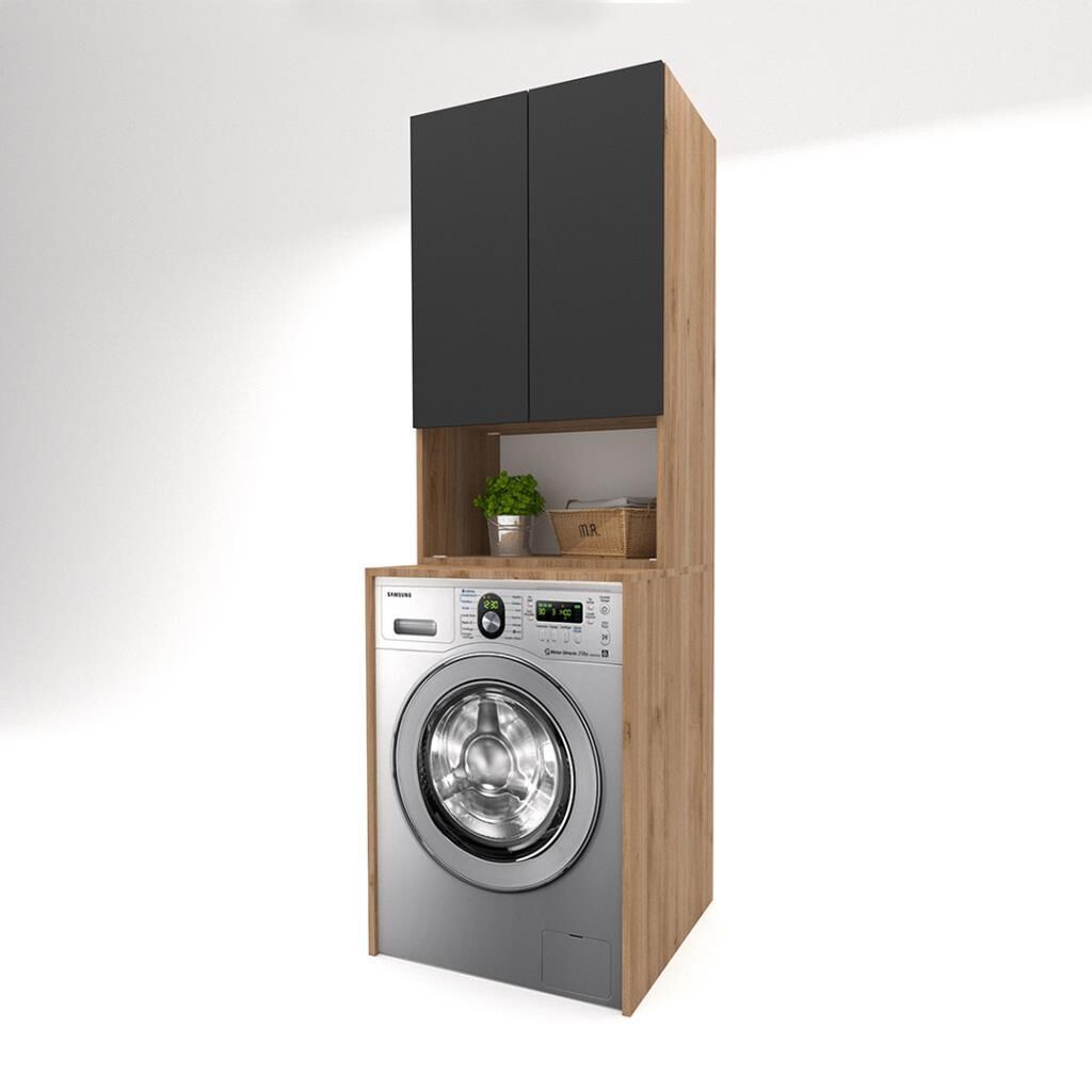 Trio Pazaryeri Çamaşır Makinası Dolabı - 65 cm - 2'li Set - Meşe - Sm Fırtına Gri