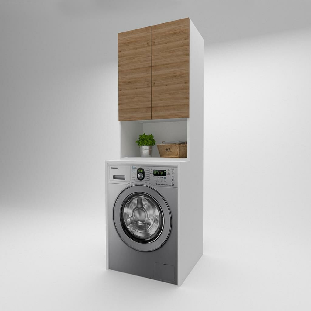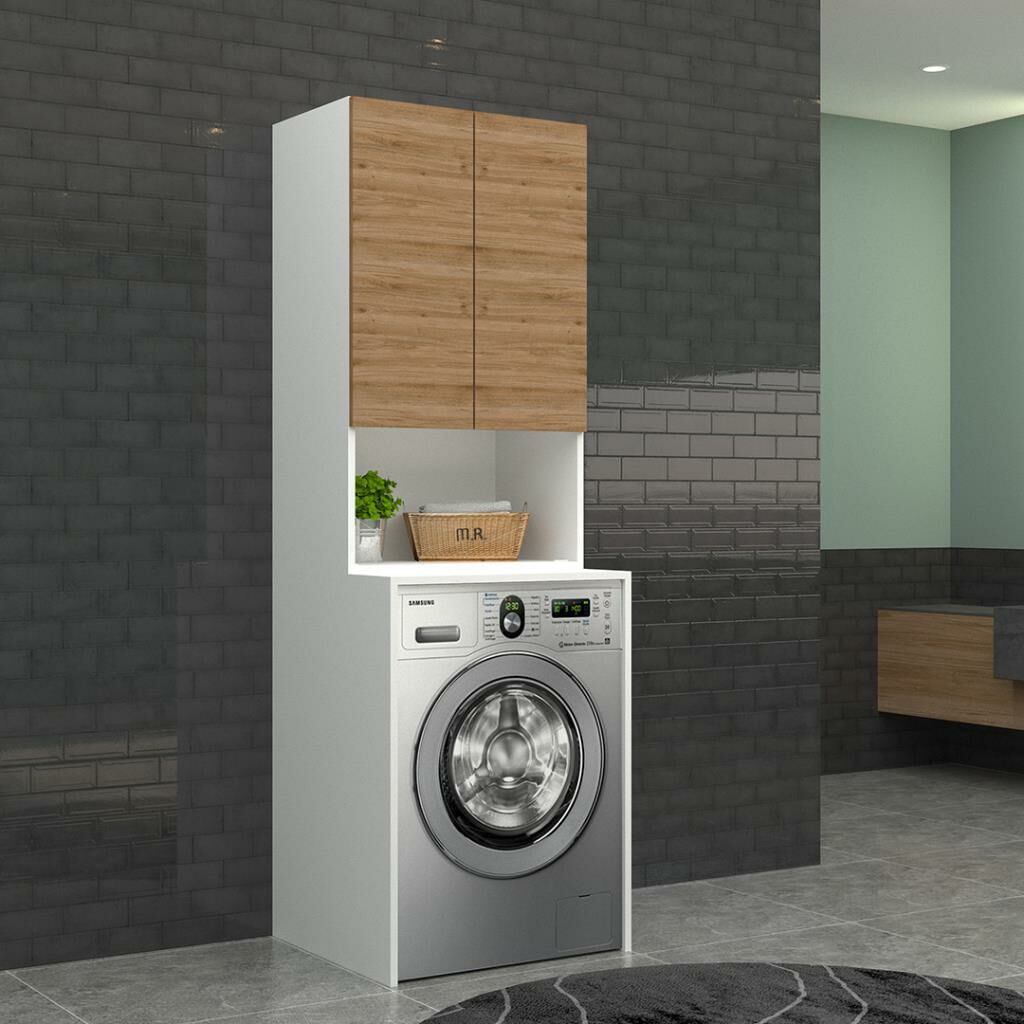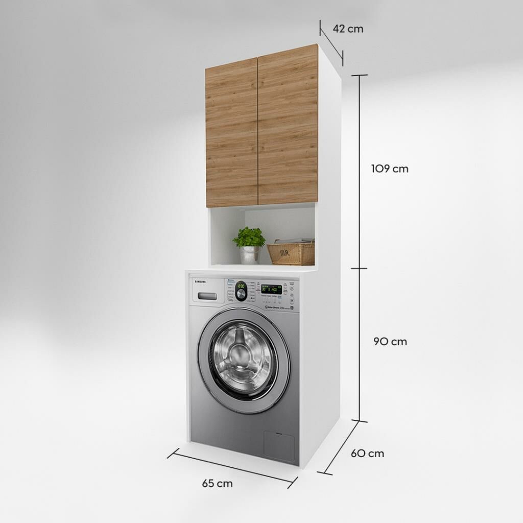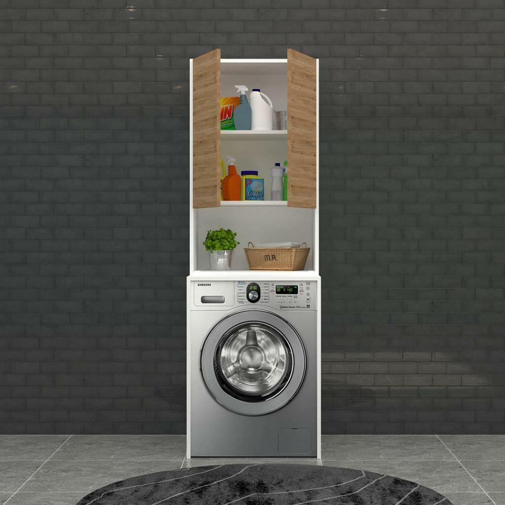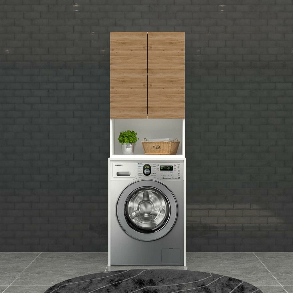 Trio Pazaryeri Çamaşır Makinası Dolabı 65 cm 2'li Set - Beyaz - Meşe