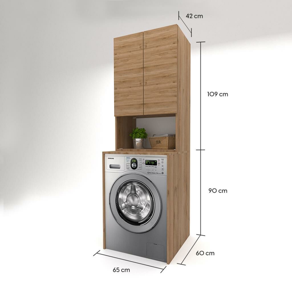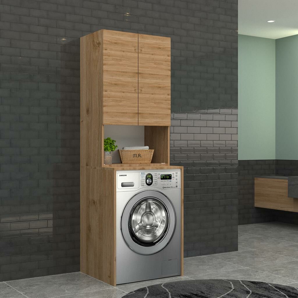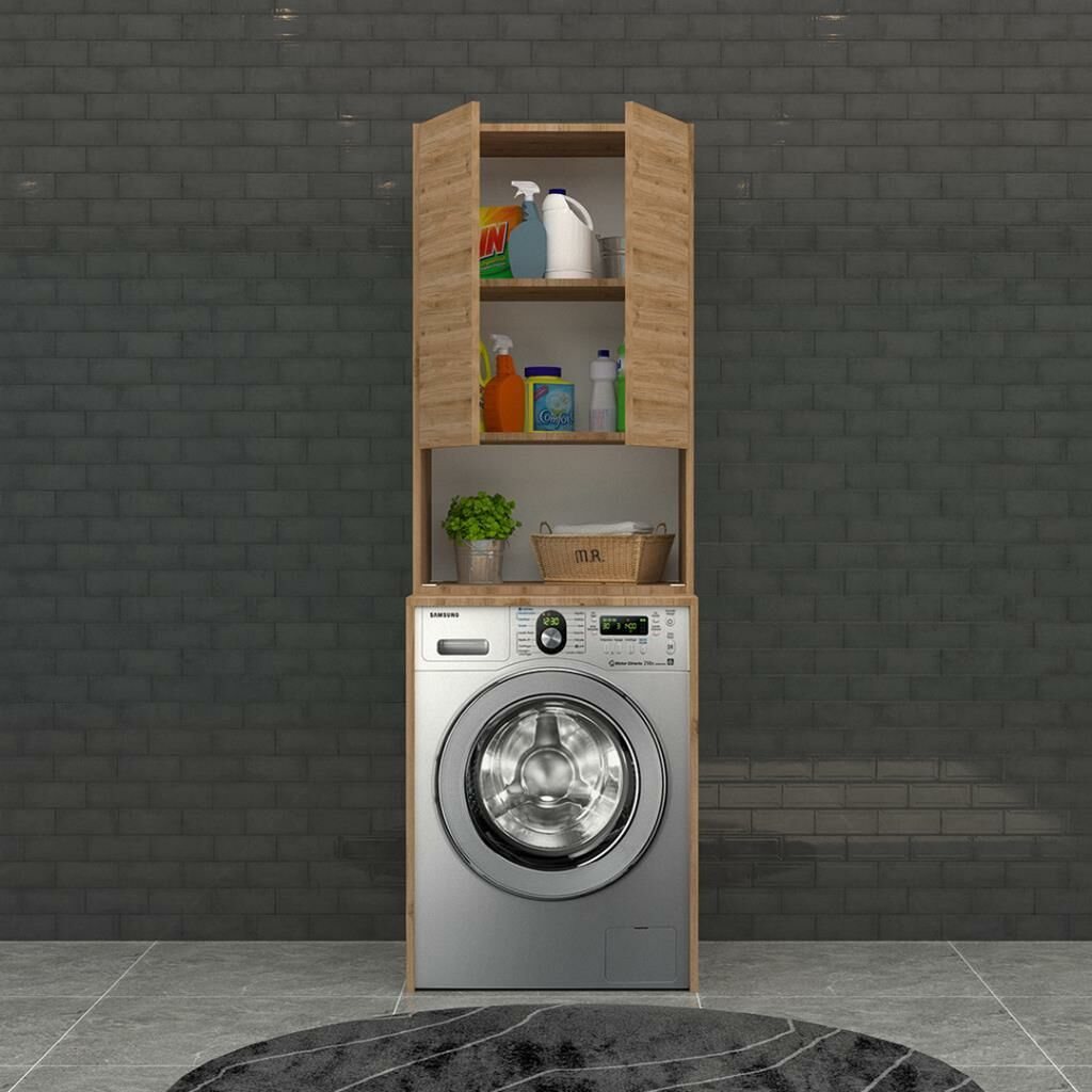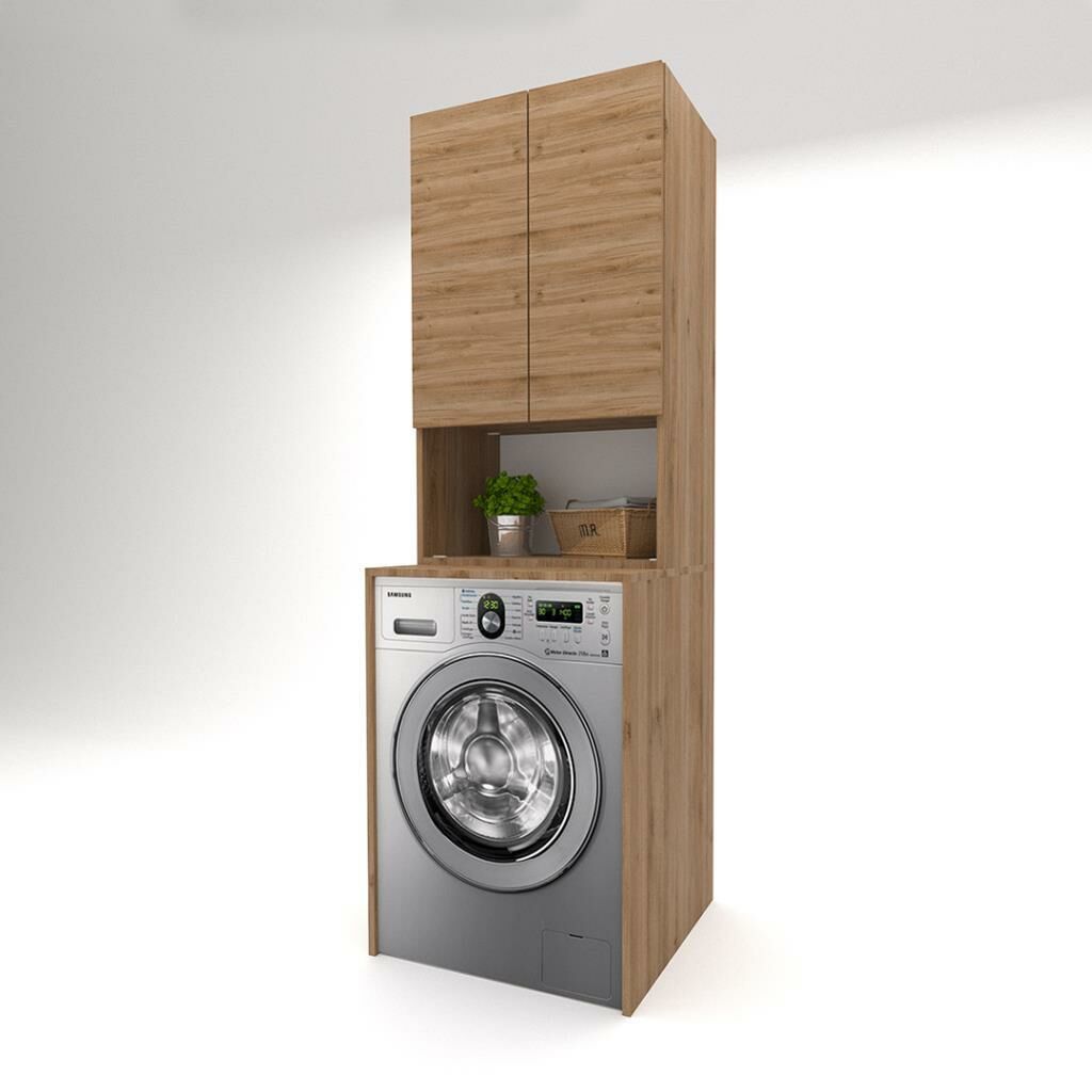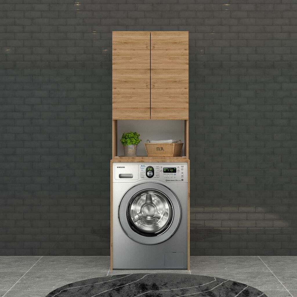 Trio Pazaryeri Çamaşır Makinası Dolabı - 65 cm - 2'li Set - Meşe