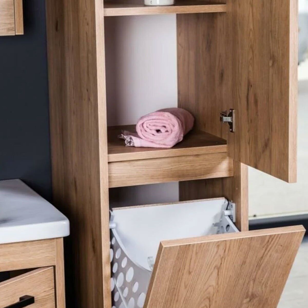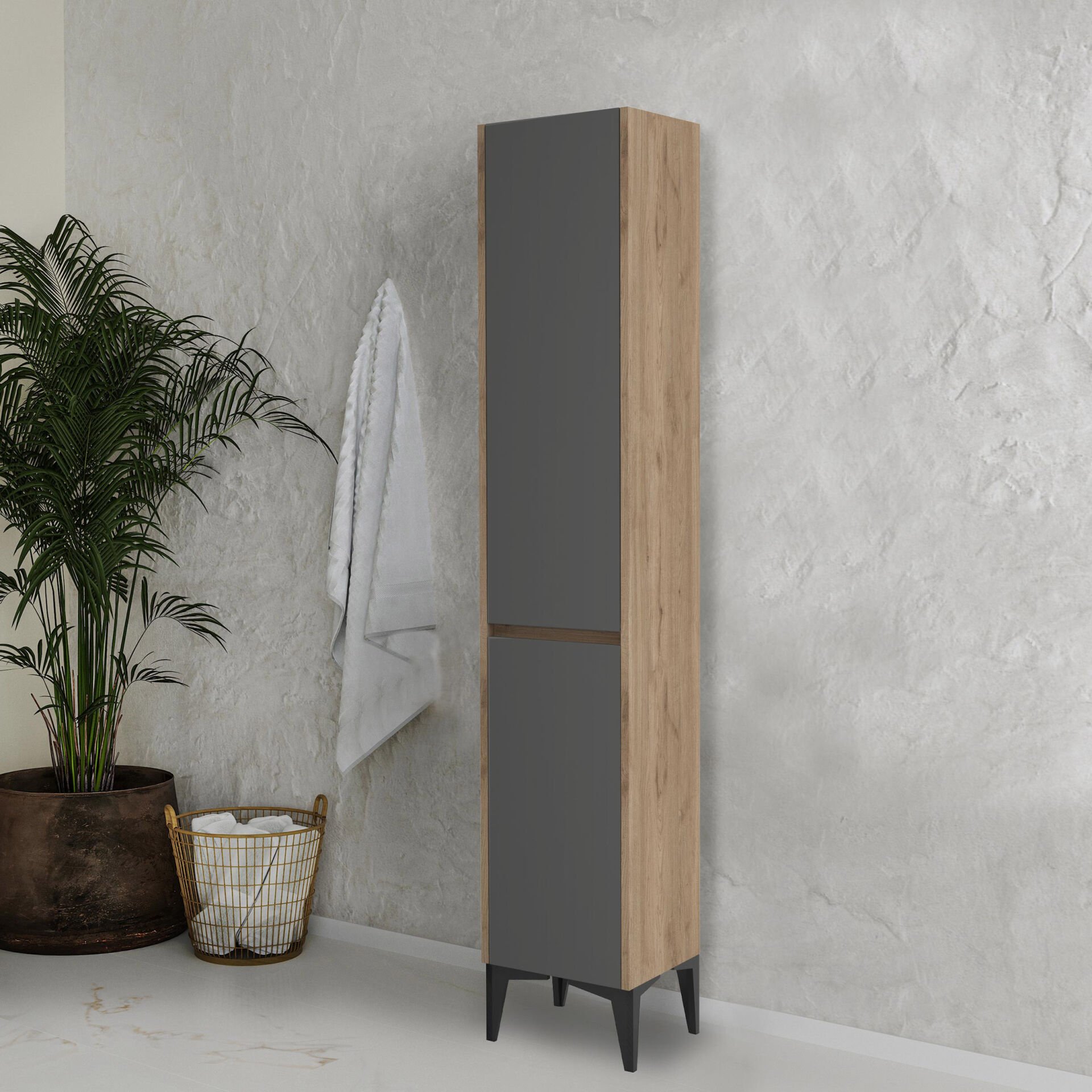 Çamaşır Sepetli Boy Dolabı Kombin - 40 cm - Meşe - Antrasit Gri ÜRÜN AÇIKLAMASI