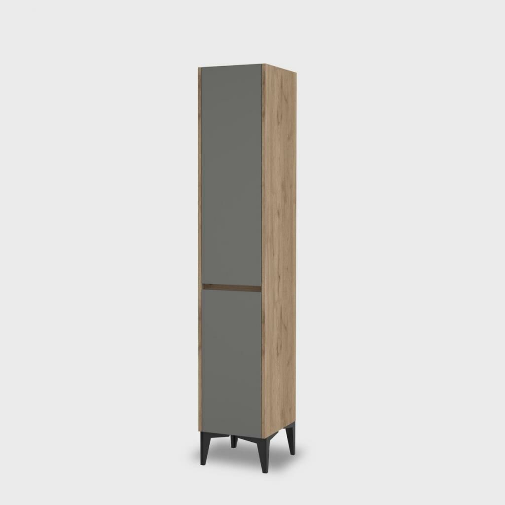 Trio Pazaryeri Çamaşır Sepetli Boy Dolabı Kombin - 40 cm - Meşe - Sm Kaya Gri