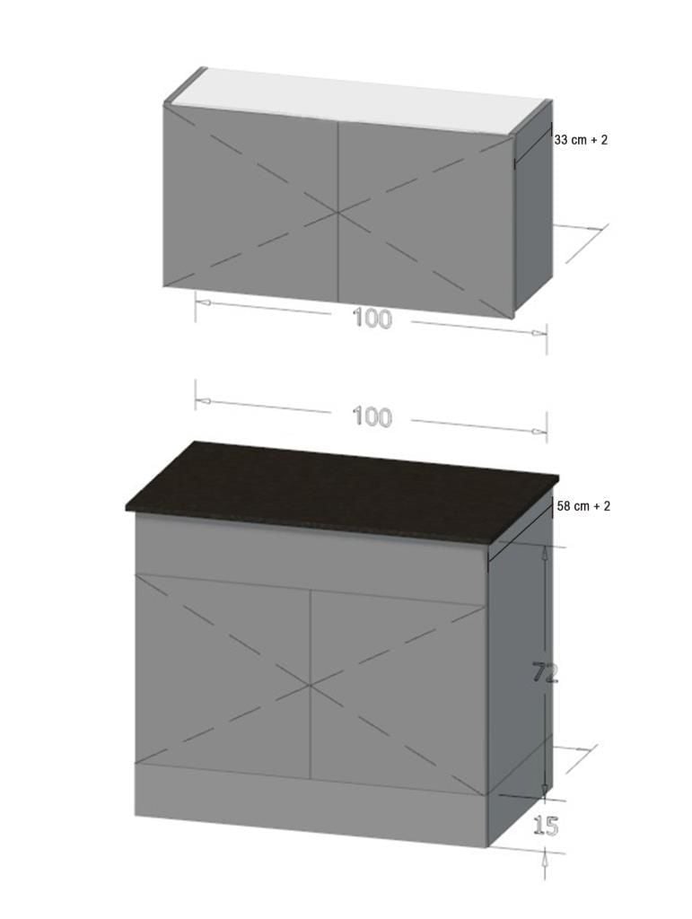 Genişlik: 100 cm, Yükseklik: 72 cm + 15 cm ayak , Derinlik: 60 cm