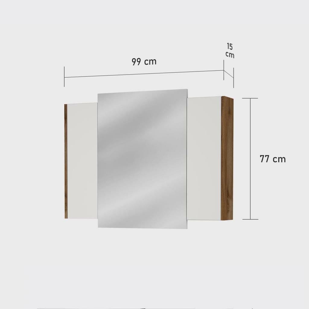 Aynalı Üst Dolap Ölçüleri; Genişlik: 99 cm, Yükseklik: 77 cm, Derinlik: 15 cm
