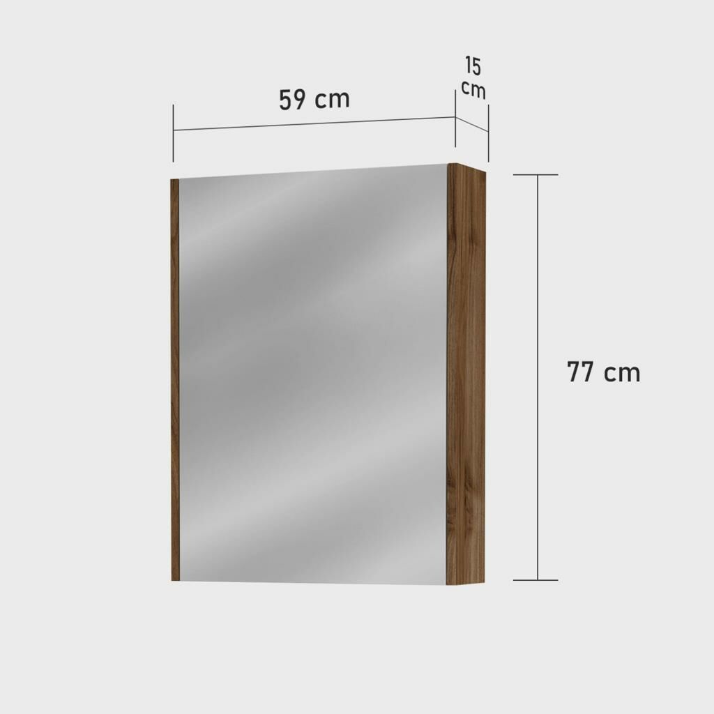 Aynalı Üst Dolap Ölçüleri; Genişlik: 59 cm, Yükseklik: 77 cm, Derinlik: 15 cm